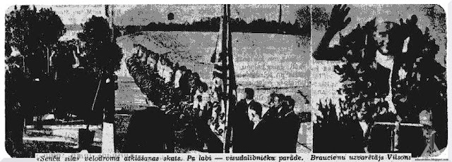 Jaunremontētajā sporta biedrības «Dinamo» velodromā Senču silā pie Baltezera daudzu tūkstošu skatītāju klātbūtnē svētdien sākās 6 pilsētu sacīkstes riteņbraukšanā. Sacensībās piedalās Maskavas, Ļeņingradas, Tbilisi, Erevanas, Tulas un Rīgas komandas, bet individuālajā sacensībā arī Kauņas riteņbraucēji. Pēc oficiālā atklāšanas ceremoniāla Latvijas PSR Fiziskās kultūras un sporta komitejas priekšsēdētājs b. Apse pasniedza balvas pagājušā gada uzvarētājiem Vissavienības šosejas un krosa riteņbraukšanā A. un V. Lasi, Ķeisterim un Heniņai. Voldemārs Lasi bija pirmais mūsu republikas sportists, kurš saņēma augsto atzinību — zelta medaļu. Alma Lasi saņēma divas un Ķeisteris vienu sudraba medaļu, bet Veltai Heniņai pasniedza bronzas medaļu. Sešu pilsētu sacīkšu pirmajā dienā notika 1 km sprinta brauciens vīriešiem un sievietēm un 25 km brauciens aiz motocikla. Lai noskaidrotu uzvarētājus uz tālāko vietu kārtību 1 km braucienā, dalībniekiem nācās braukt vairākkārtīgi, bet pirmo vietu ieguvējiem savstarpējā sacensībā bija jāgūst divas uzvaras. Vīriešu fināla sacensībā satikās abi patreiz labākie PSRS sprinteri — sporta meistari Batajens un Ipoļitovs (abi Maskava). Pirmajā braucienā ar mazu starpību uzvarēja Batajens, bet otrā ar vēl mazāku — Ipoļitovs. Ar labi pārdomātu taktiku trešajā braucienā uzvarēja Ipoļitovs, iegūstot 1 km distancē pirmo vietu. No Rīgas riteņbraucējiem labākos panākumus ieguva Vilsons, ierindodamies 11., un Ķeisteris — 12. vietā. Arī sieviešu finālā abas sīvākās konkurentes cīnījās trīs braucienos. Divos braucienos uzvarēja un pirmo vietu